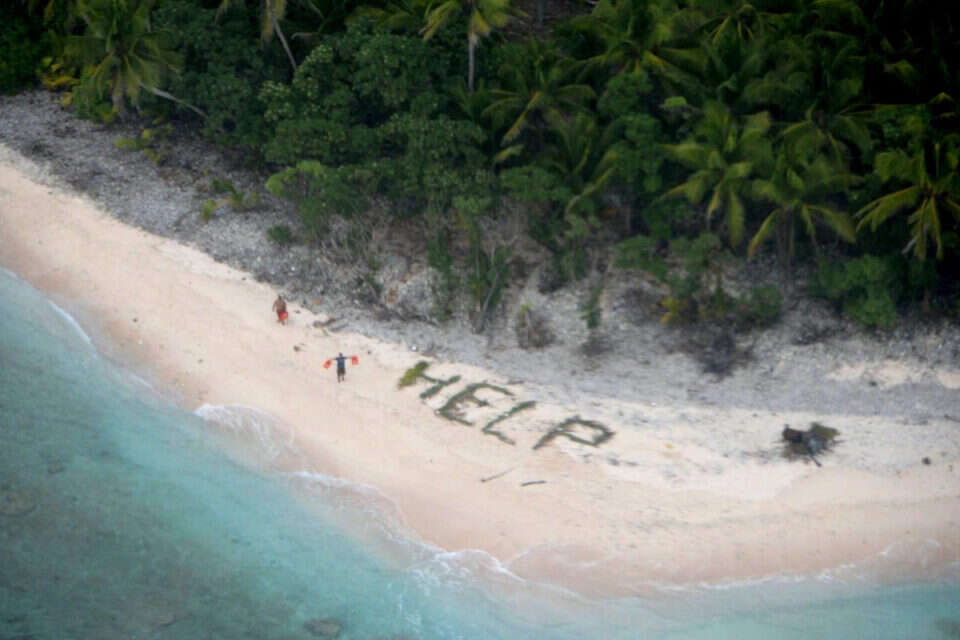 סיפורי חילוץ כמו זה שאירע ביום חמישי האחרון מתרחשים בדרך כלל רק בסרטים הוליוודיים. חיל הים ומשמר החופים האמריקניים גילו והצילו שלושה מלחים שנסחפו לאי בודד בים הפסיפי, לאחר שמטוס של חיל הים זיהה את הכיתוב "הצילו" (HELP) שכתבו המלחים באמצעות ענפי דקל על החוף.