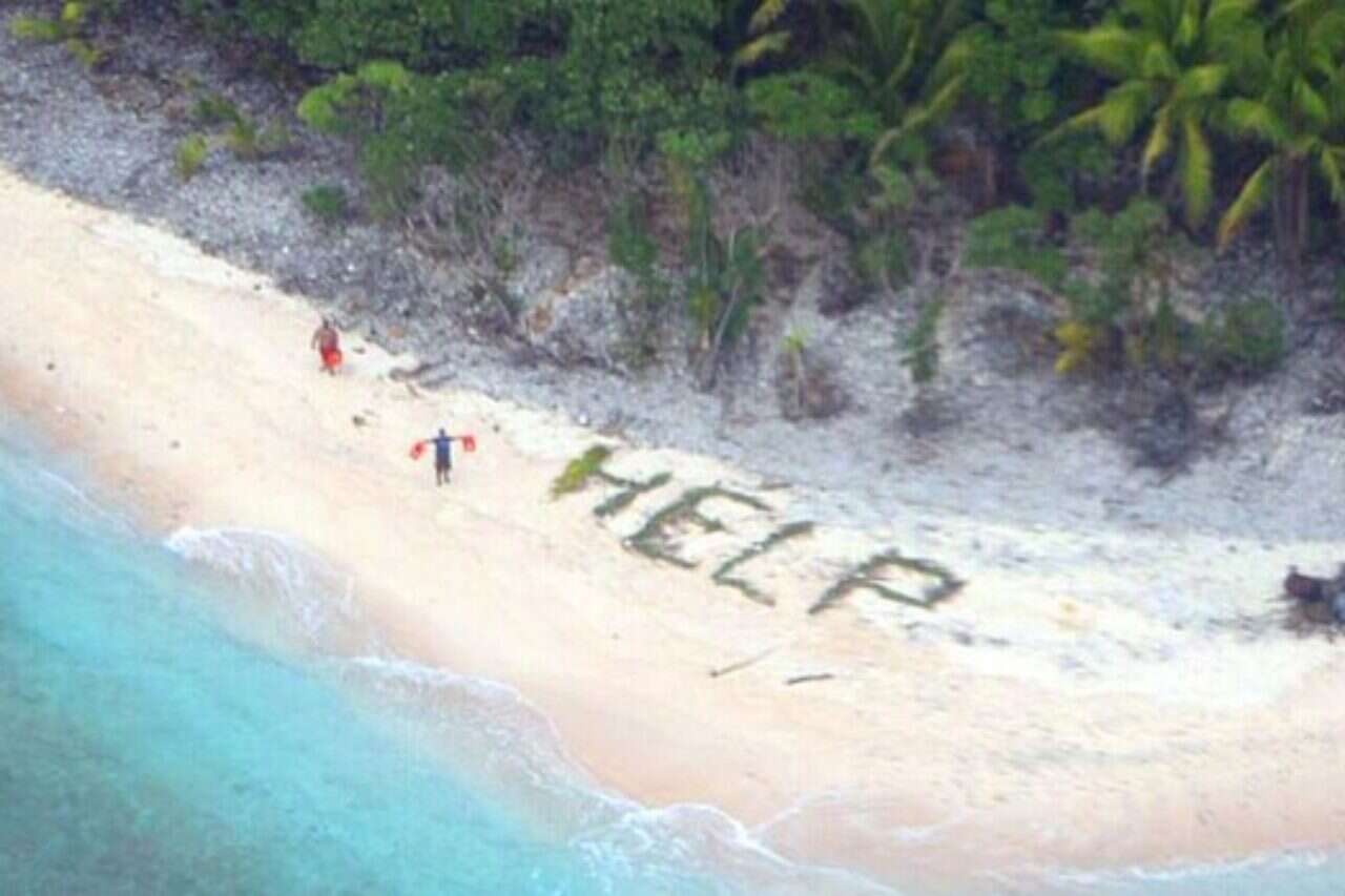 הדייגים המתינו במשך שלושה ימים לחילוץ באי המבודד. ביום חמישי האחרון, צוות מטוס חיל הים האמירקני הבחין בקריאות לעזרה, אחרי שהדייגים כתבו על החוף את המילה HELP בעזרת ענפי דקל. כשהנמיכו את כלי הטיס, הבחינו אנשי צוות האוויר בדייגים מנופפים להם בעזרת חליפות ההצלה שלהם.