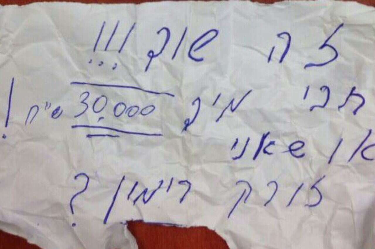 "זה שוד – תבי(אי) מיד 30 אלף שקלים או שאני זורק רימון (?)", כך כתב לכאורה הצעיר, תושב אשדוד, על הפתק ששימש אותו, כאשר הוא גם כותב בשגיאות כתיב.