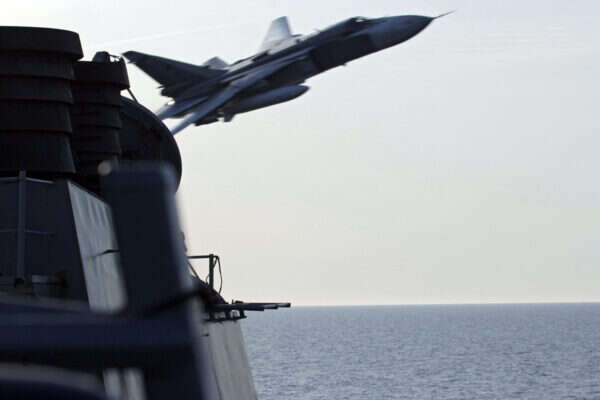 שני מטוסי קרב מדגם "סוחוי 24" טסו בגובה נמוך ובאופן מתגרה ליד המשחתת האמריקנית "דונלד קוק"