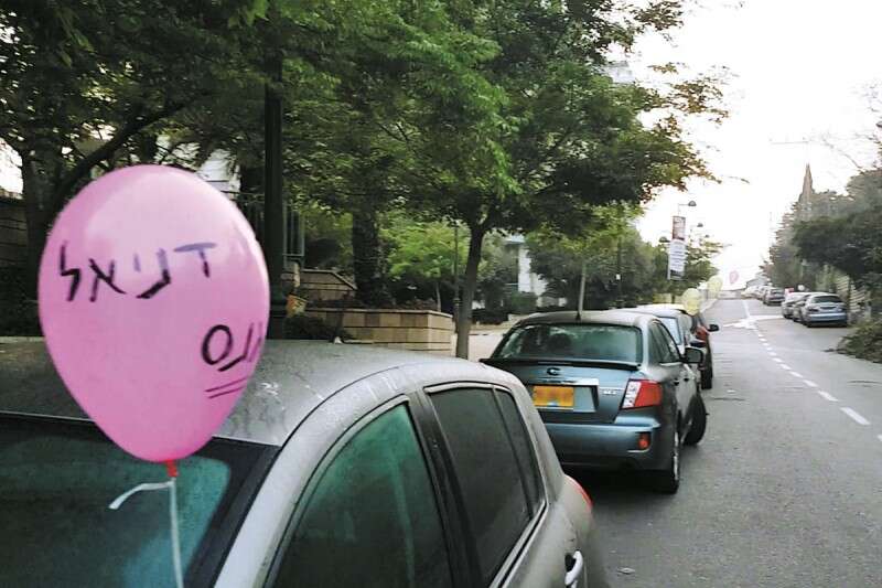 הבלונים שהוצמדו למכוניות ברחוב שבו מתגורר דניאל: "אורי דניאל אנס" // צילום: יהושע יוסף