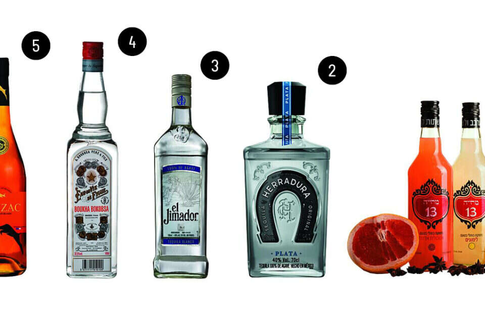 6. ברנדי תמרים של פלטר, 180 ש'; 7. יוליוס ביטרס, 165 ש'; 8. או־דה־וי דה טנג'רין, 185 ש'; 9. ברנדי Charm x.o, 160 ש' // צילום: קובי טל; 10. וודקה Passover ענבים 110 ש'; 11. וודקה Passover אננס, 110 ש'