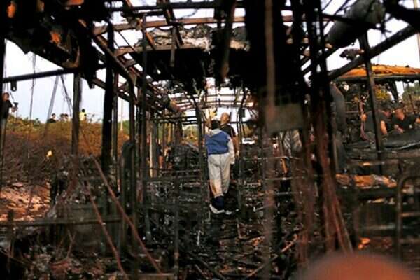 האוטובוסים שעלו באש: אוטובוס אחד נשרף כליל (משמאל) וחלקו הקדמי של האוטובוס השני עלה גם באש // צילום: נעם ריבקין פנטון
