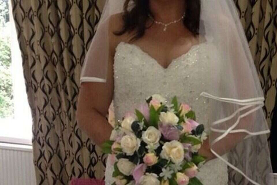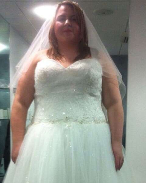 אחרי שניסתה קומץ של שמלות, נאלצה הכלה לעתיד להתפשר על שמלת נסיכה ענקית במחיר של 1,250 יורו, עם כמויות בד נשפך, בתקווה שיסתיר את גזרתה העבה.