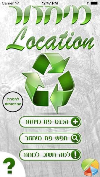אפליקציית מחזור באמצעותה תוכלו לבחור את סוג הפסולת שאתם מעוניינים לפנות: נייר, בגדים, פלסטיק, סוללות, מתכות, זכוכיות ועוד. האפליקציה את מיקומו של פח המחזור הקרוב , אליו תוכלו לנווט באמצעות רכיב ה-GPS של הסמארטפון שלכם. האפליקציה מכילה מאגר של כ-5,600 פחי מחזור ברחבי הארץ ומאפשרת לכל משתמש לקחת חלק פעיל ולהרחיב בכל עת את מאגר הפחים לפי מיקומם וסוגיהם.