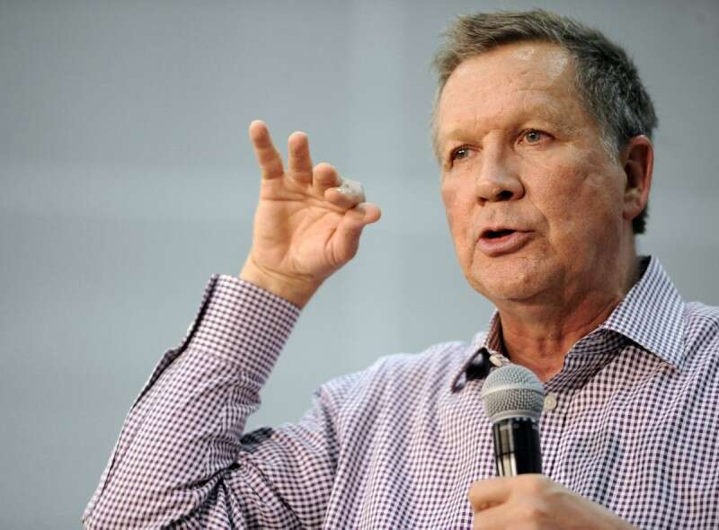 מושל אוהיו קייסיק בקמפיין בקונטיקט. אמש // צילום: אי.פי
