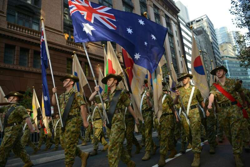 מצעד חיילי צבא אוסטרליה ביום הזיכרון, אתמול // צילום: איי.אף.פי