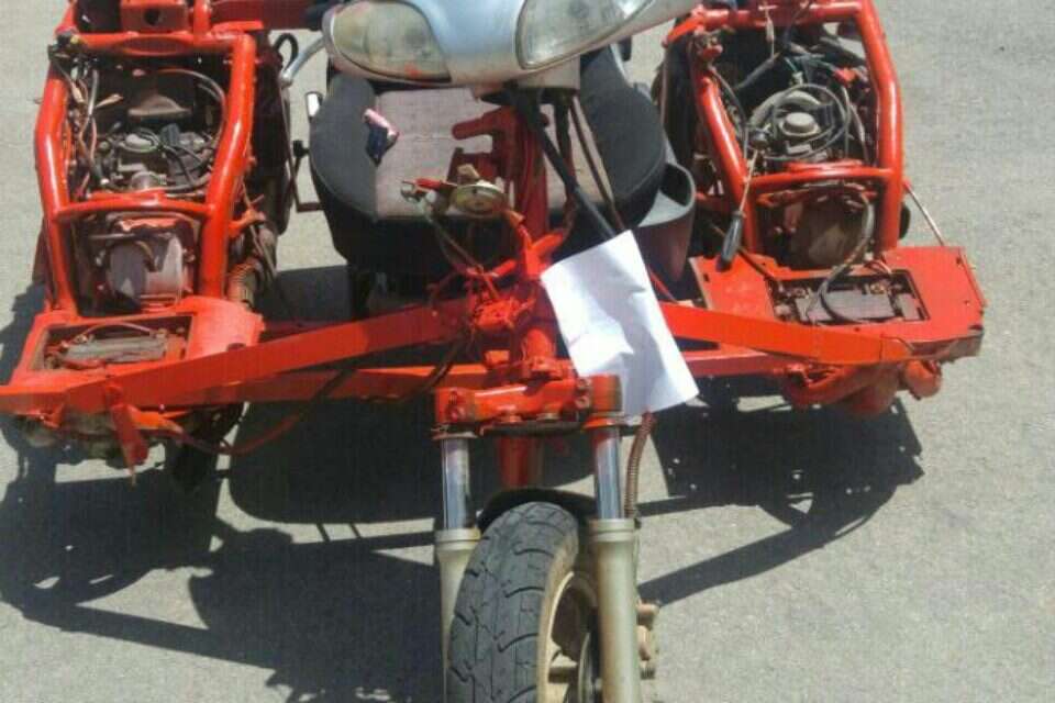 במסגרת סיורי שוטרי משטרת ישראל בצירי התנועה ברחבי הארץ, נראה נהג בכביש בינעירוני, 65 סמוך לגן שמואל, כשהוא נוהג ברכב מאולתר שנבנה, ככל הנראה, משני קטנועים.