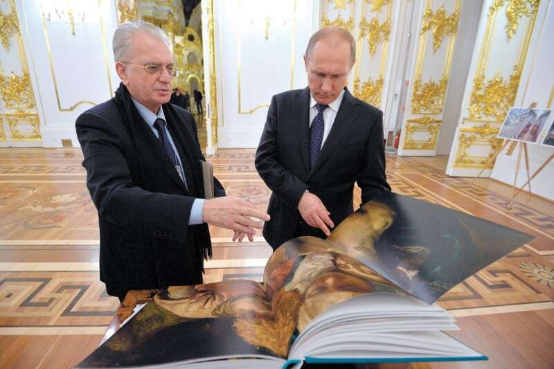 "יש בו שילוב שאין לו ואח ורע בעולם: אוספים מדהימים עם ההיסטוריה הרוסית שחיה בקירות המוזיאון, אנציקלופדיה של אדריכלות ואפילו (צוחק) פנורמה מהחלון שאין לשום מקום אחר. ההרמיטאז' הוא סמל תרבותי עבור רוסיה, אפילו יותר מהלובר עבור צרפת. נכון, גם הלובר צמח מתוך ארמון המלוכה, אבל לא במידה שבה זה קרה להרמיטאז', משום שהמוזיאון היה חלק ממרכז החיים הפוליטיים של האימפריה הרוסית. המוזיאון הוא למעשה אנציקלופדיה של האמנות העולמית, שכתובה ברוסית ולכודה בתוך קליפה של ההיסטוריה הרוסית. כאן החלה האימפריה הרוסית, כאן מתו הצארים פיוטר הראשון ואלכסנדר השני; כאן האימפריה גם נגמרה, עם כיבוש ארמון החורף (היום אחד ממבני ההרמיטאז'; ד"ב) במהפכת אוקטובר 1917. הקירות זוכרים את כל מה שקרה כאן. אפילו תיירים שמגיעים אלינו מרגישים את נוכחות ההיסטוריה, וזה נפלא".