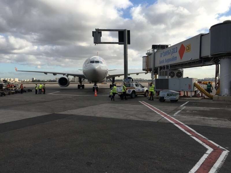 המטוס הסיני מגיע לחנייה בנתב"ג // צילום: אילן גטניו