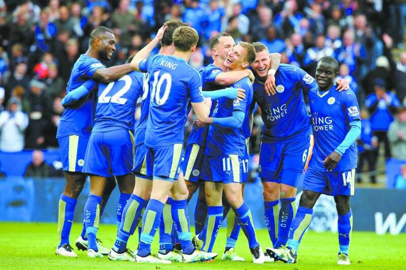 שחקני לסטר מחויכים. יחזרו הערב לעירם עם גביע האליפות? // צילום: אי.פי.אי