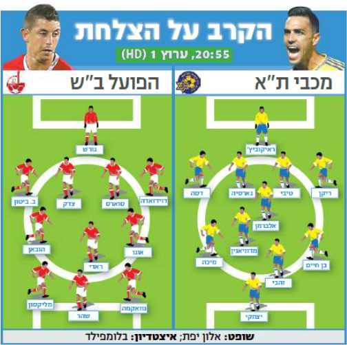 במכבי ת"א עדיין לא יודעים מי יפתח הערב בין הקורות, ראיקוביץ' או ליפשיץ, אבל מה שהם כן יודעים זה שאם הם רוצים לשמור על תואר האליפות שנה נוספת, אסור להם להפסיד היום (20:55, ערוץ 1), או כפי שתיאר זאת בצורה הטובה ביותר הקשר דור מיכה: "הכל מתנקז למשחק הזה, מבחינתנו זה משחק של להיות או לחדול". על פי האימון המסכם, המאמן פיטר בוס מתכנן לפתוח בהרכב התקפי במיוחד, וטל בן חיים והאריס מדוניאנין ישובו ל־11 וברק יצחקי ימשיך בחוד לצידו של ערן זהבי. עם זאת, אם ההולנדי יחליט בסופו של דבר לשחק עם שלושה קשרים באמצע, דור פרץ יקבל את הקרדיט.