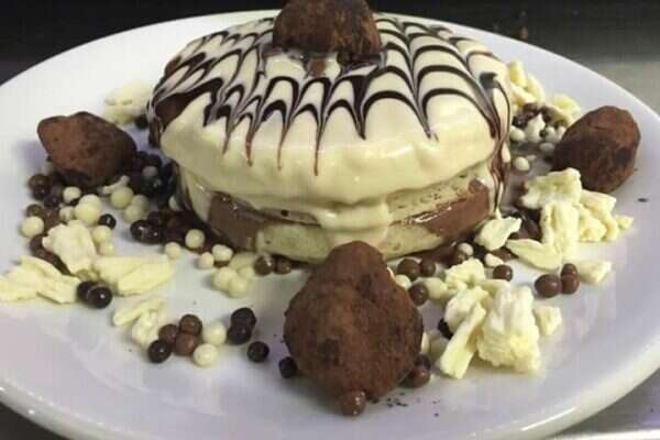 • "לילה לבן"- פנקייק עם קרם נוגט לבן חם, סירופ שוקולד, פניני שוקולד ומקופלת לבנה.