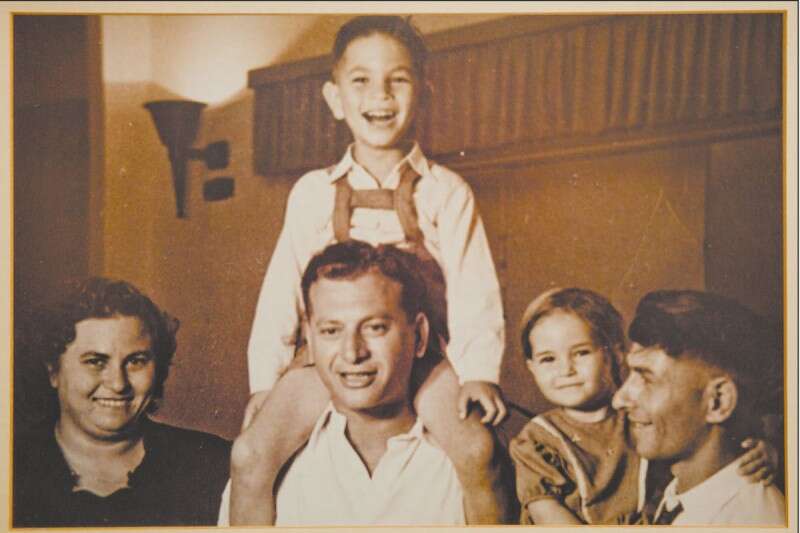 מירי בילדותה (בידיים של אביה אפרים), עם אחיה חיימק'ה (על כתפי קרוב של המשפחה) ואמה חנה