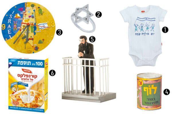 7. צנצנת נשיקות מרנג עם דגלי ישראל, 54 ש'. באתר אנד ג'וי 8. צמיד של המותג תומס סאבו, 608 ש'. להשיג ברשת אימפרס 9. קמח, "הטחנות הגדולות של ארץ ישראל", 5-3 ש' ל־1 ק"ג 10. שוקולד בעיצוב הדגל, בוטיק דה קרינה 19 ש' ל־100 גרם באתר de-karina,