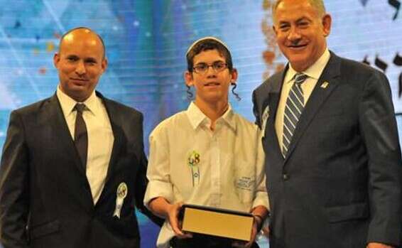 אלקנה פרידמן (במרכז) עם ראש הממשלה נתניהו ושר החינוך בנט // צילום: לע"מ