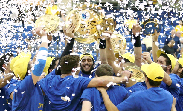 שחקני מכבי ת"א. חגגו אליפות שנייה בתולדות המועדון // צילום: אלן שיבר