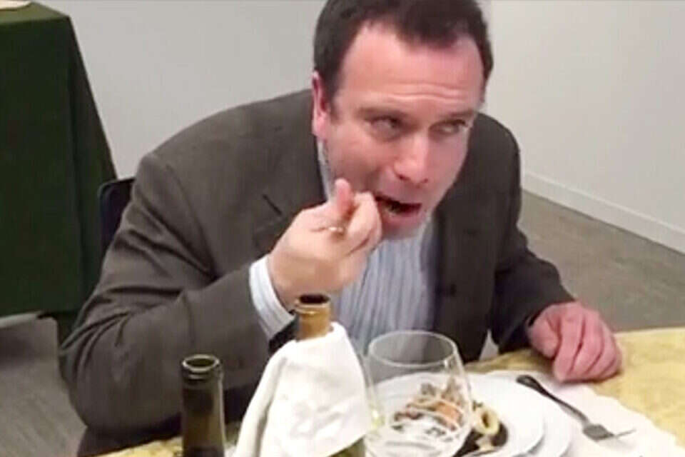 באירוע, ששודר בשידור חי ברשתות החברתיות והפך עד מהרה לוויראלי, התייצב הפרשן המוכר במשרדי ה"וושינגטון פוסט" לארוחה מיוחדת שכללה גזרי עיתון של אותו הטור. התפריט יוצא הדופן כלל דמפלינג עם גזרי עיתון, פלאפל עם גזרי עיתון ואפילו טאקו עם גזרי עיתון. את המנות הכין שף וושינגטוני מפורסם, ויקטור אביסו, שהצליח לשלב גזרי עיתון בחלק ממתכוניו הנודעים ביותר. כדי לעכל את הארוחה, מילבנק התבקש כמובן לשתות כמה כוסות יין המיוצר על ידי - ניחשתם נכון - יקבי טראמפ. הפרשן, דרך אגב, הגדיר את היין בתור "נוראי, אבל בר שתייה". בסיומו של האירוע, וכשקיבתו מלאה בחתיכות נייר, מילבנק דווקא טען כי החוויה "התבררה כלא נוראית בכלל". "זה לא כאב יותר מדי", אמר לצופים בפייסבוק, "זה בוודאי לא מתקרב לרמות הכאב שנחווה בששת החודשים הקרובים (הזמן שנותר למערכת הבחירות לנשיאות)".