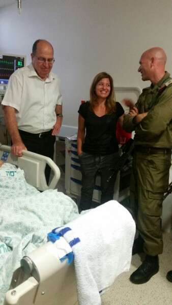 היום הגיע לבקר אותו שר הביטחון משה (בוגי) יעלון, ולמד על מצבו ועל קורותיו דרך לוח הכתיבה בו הוא משתמש על מנת לתקשר עקב הפציעה שאינה מאפשרת לו לדבר. ״התרגשתי לבקר את הקצין ולפגוש אותו ואת משפחתו, המגלים תעצומות נפש של ממש״, אמר יעלון, שקיבל מרופאי הדסה סקירה על מצבו הרפואי של הפצוע ועל הניתוח הממושך שעבר.