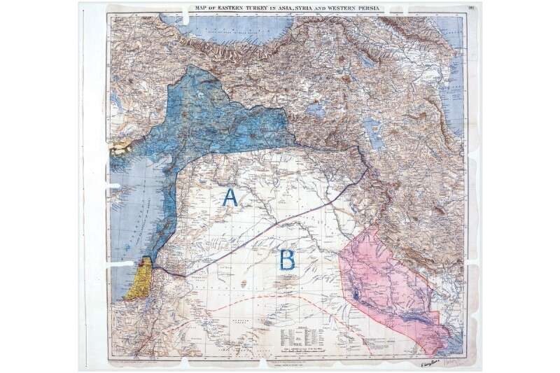ב־16 במאי, לפני מאה שנה, נחתם הסכם סייקס־פיקו בין צרפת לבריטניה. ההסכם נועד לקבוע את חלוקת שטחי המזרח התיכון, שהיו בידי האימפריה העות'מאנית, לקראת סיום מלחמת העולם הראשונה. ארץ ישראל נועדה להתחלק באזורים שבשליטה בריטית ולכלול את עבר הירדן המזרחי, הנגב ומובלעת באזור חיפה (השטח הצהוב המסומן במפה המקורית של ההסכם).