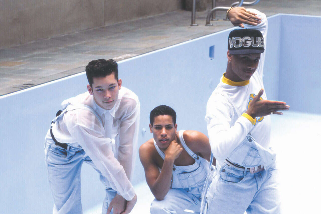 שלושה מהרקדנים בצילום מ־1990. במרכז: גבריאל טרופין, שמת מאיידס ב־1995. משמאל: קווין סטיאה, שיגיע לארץ לדוקאביב // צילום: Lisa Guarnieri // שלושה מהרקדנים בצילום מ־1990. במרכז: גבריאל טרופין, שמת מאיידס ב־1995. משמאל: קווין סטיאה, שיגיע לארץ לדוקאביב