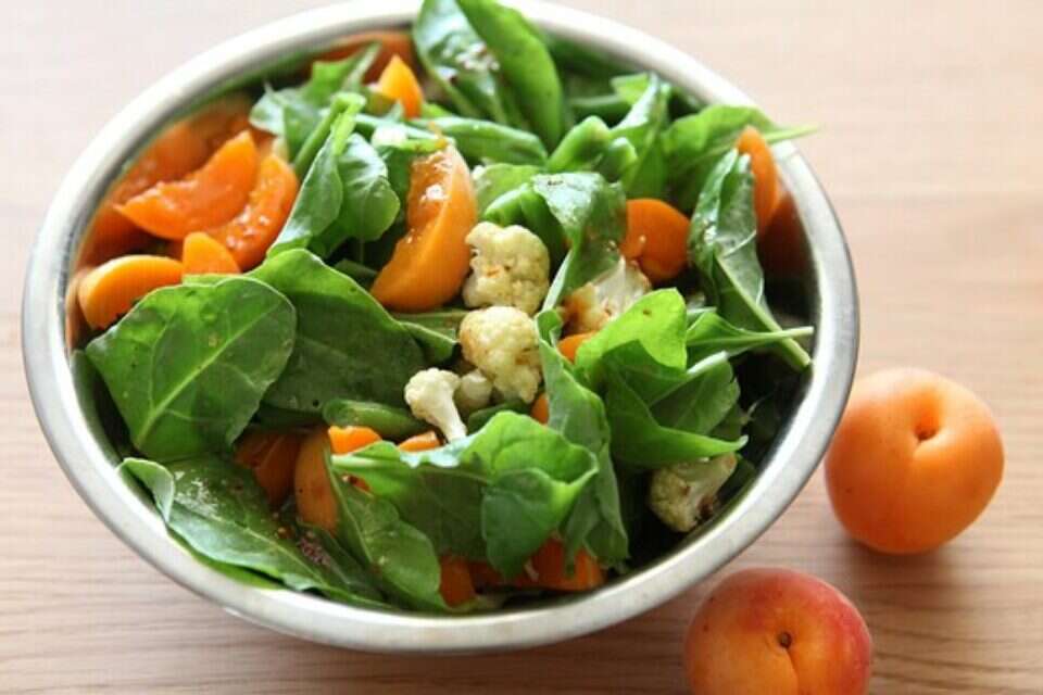 סלט משמשים, כרובית צלויה ותרד טרי