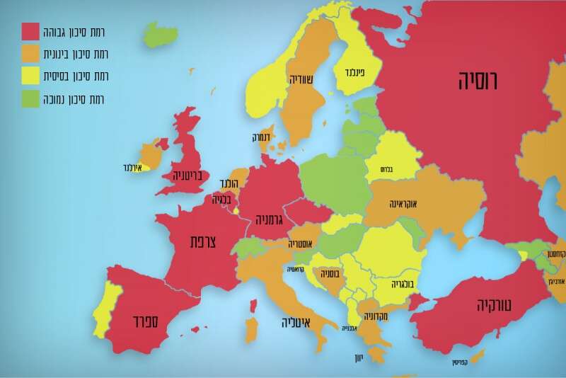 משרד החוץ הבריטי פרסם לקראת עונת החופשות את מפת איומי הטרור ברחבי היבשת, וסיווגה את מדינות אירופה לרמות סיכון "גבוהה", "בינונית", "בסיסית", ו"נמוכה".