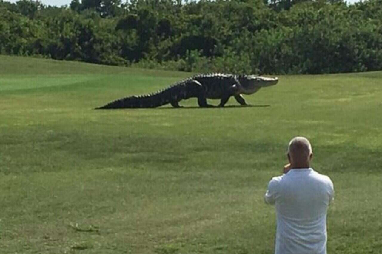 שחקני הגולף ב"פלמטו", פלורידה, לא יוכלו לשכוח שהם נקלעו לתוך סצנה של פארק היורה בתחילת השבוע. תוך כדי משחק ביום ראשון טיפוסי בבית מגרש "גולף קריק באפלו", צ'ארלס הלמס צילם סרטון וידאו של תנין מפלצתי וענקי מטייל בשלווה.