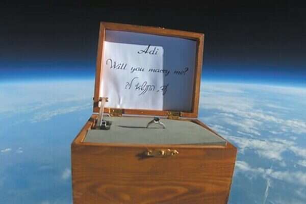 מי שהיה אחראי על הביצוע והשיגור באנגליה, משום ששיגור כזה אסור בישראל, היה כריס הילקוקס. הניסיון הראשון לשגר את הצעת הנישואים הזו כשל, אך הפעם השניה הצליחה - וגררה אחריה "כן" מרגש.