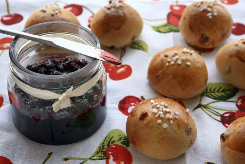 לחמניות דובדבנים מיובשים ווניל עם ריבת דובדבנים