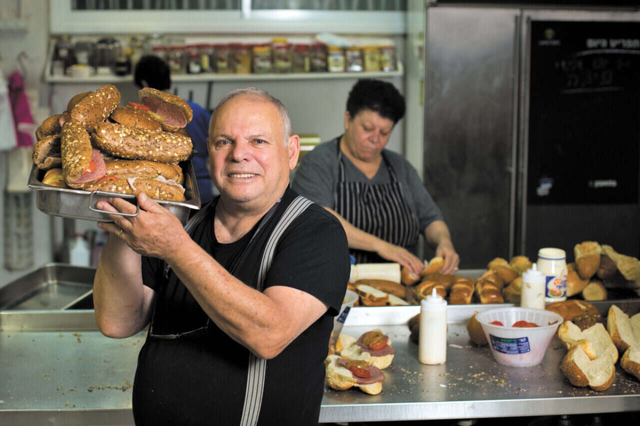 הוא מצביע על מכונה ישנה לפריסת לחם, עמוסה פירורים מהבוקר. "היא בת 40 בערך. קיבלתי אותה לפני חמש שנים ממישהו שהשתמש בה 20 שנים אחרי שקיבל אותה ממישהו אחר. אני צריך פורסת חדשה, אבל משתמש בזו עד שתהיה לי אחרת".