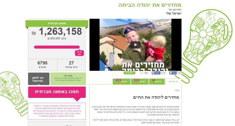 חצו את המיליון שקלים ביום אחד. דך דף ההדסטארט שנפתח למען יהודה // צילום מסך