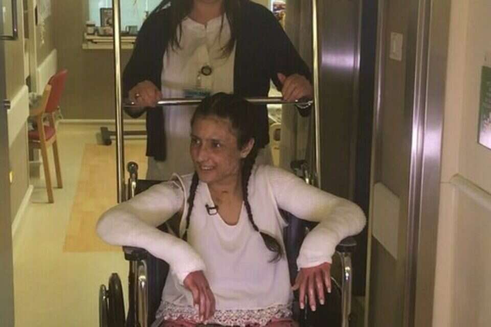 בתחילה היא הייתה מונשמת ומורדמת ואשפזה ביחידה לטיפול נמרץ. שם, במשך שבועות, טופלה על ידי הצוות במסירות עקב הפגיעות הקשות. עם המעבר למחלקה לכירורגיה פלסטית התמקד הטיפול בכוויות הקשות, בפזיותרפיה ובריפוי בעיסוק, זאת כדי לרפא אותה ולהשיב לה תנועתיות חיונית.