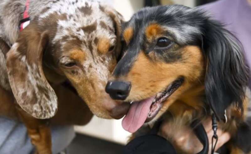 במקביל, ג'ון ודורותי סינר, שני פנסיונרים חובבי כלבי תחש חיפשו להעניק בית חם ואוהב אחרי שכלבתם האהובה מתה בשיבה טובה בגיל 16. אחרי שיטוטים ברחבי הרשת, מצאו בני הזוג סינר מודעה בה הופיעו הרבי והילדה: "אמרתי לדורותי שאני רוצה את השניים האלו אצלנו", אמר ג'ון.