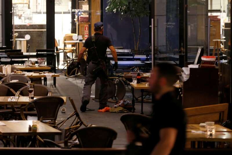 שוטרים סורקים את זירת האירוע במתחם שרונה // צילום: רויטרס