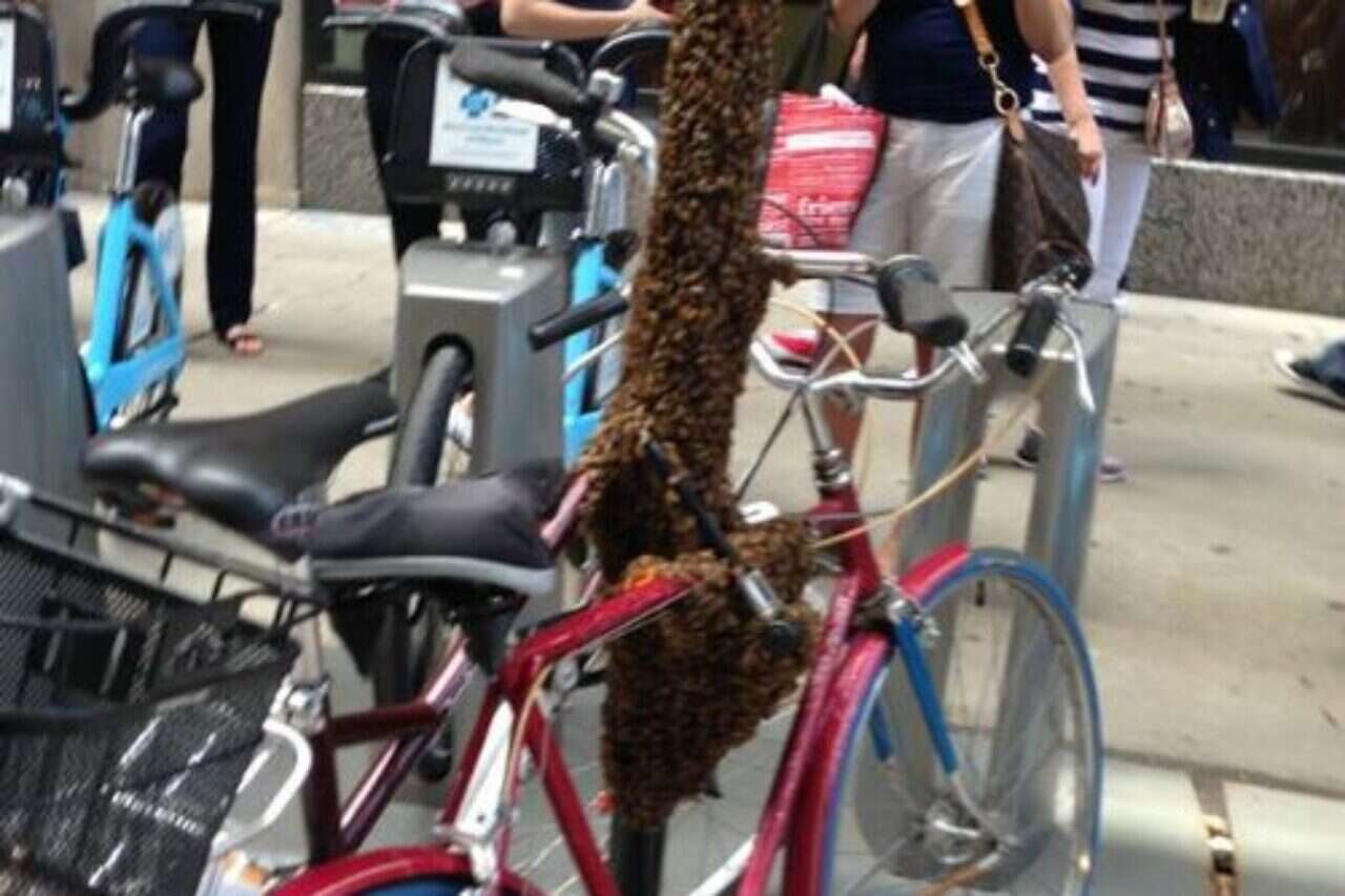 קהל צופים התגודד במרכז העיר שיקאגו כדי לצפות במחזה יוצא דופן: נחיל דבורים נצמד לעמוד חשמל ברחוב, אליו היו קשורים שני זוגות אופניים. הדבורים התאספו בתחילת השבוע על עמוד סמוך לשדרת מישיגן, ומנעו למספר שעות את הגישה לשני רוכבי אופניים, לרוע מזלם.