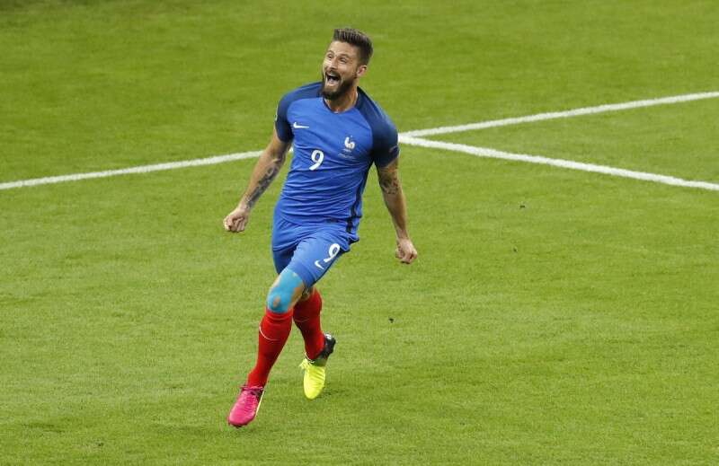 אוליבייה ז'ירו חוגג את השער הראשון של יורו 2016 // צילום: AP