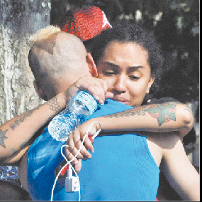דמעות והקלה. חיבוק מחוץ למטה המשטרה באורלנדו, אתמול // צילום: רויטרס