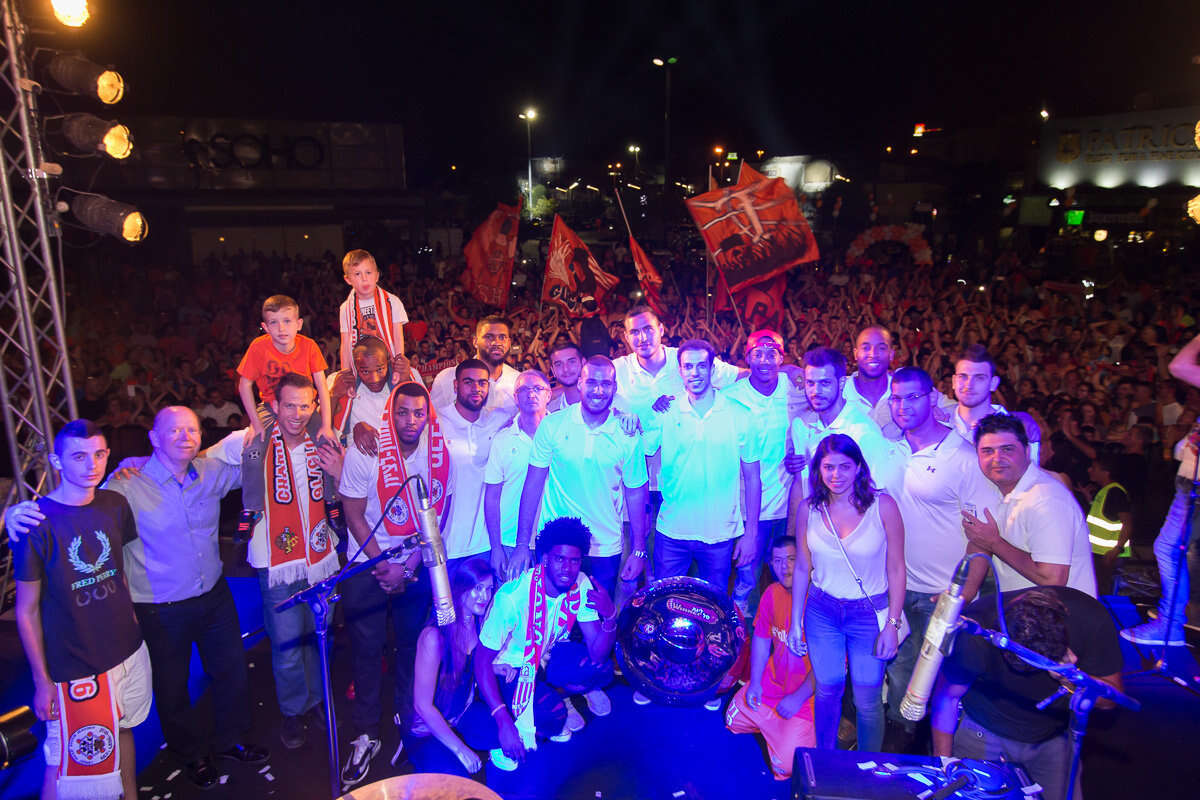 חנוכי מניף את הצלחת, אתמול בראשל"צ // צילום: עודד קרני