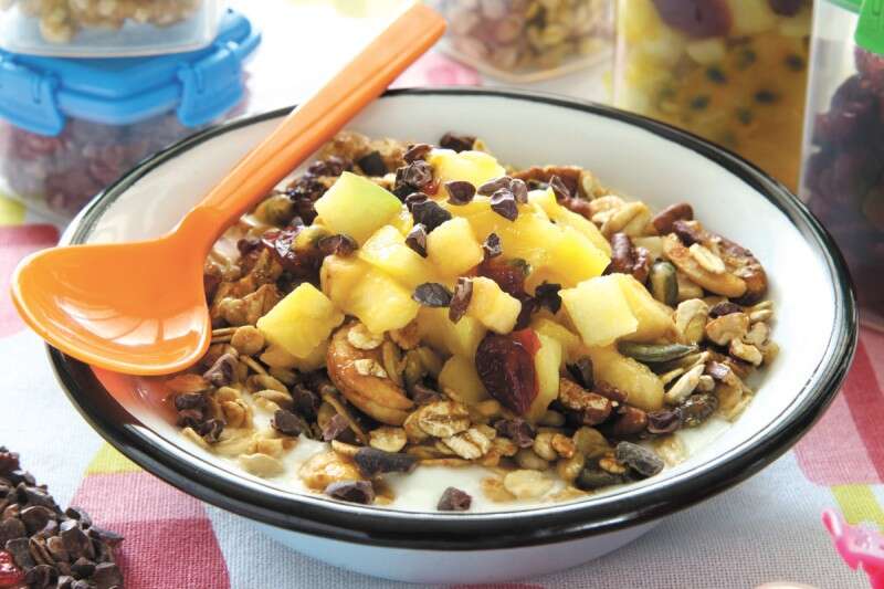 הפסקת אנרגיה - מוזלי עם גרנולת שיבולת שועל, פולי קקאו נאים ופירות טריים