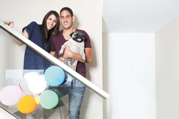 על המדרגות תלויים בלונים צבעוניים וברכת מזל טוב, שנתלתה לאחר ששרי נעתרה להצעת הנישואים שלו. במשך כחודש הוא תיכנן את ההצעה. בחן בפייסבוק תמונות של טבעות, מצא את העיצוב המיוחד שיתאים לשרי שלו והזמין אותה.
