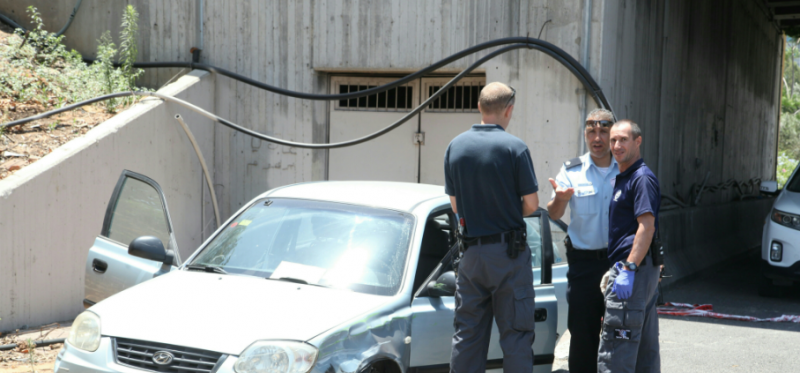 חוקרי מז"פ ליד רכבו של החשוד שהיה מעורב בתאונת דרכים // צילום: גדעון מרקוביץ'