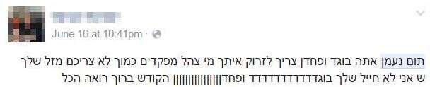 קריאות נאצה נגד רס"ן תום נעמן // צילום מסך פייסוק
