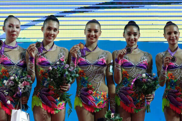 הנבחרת, שכוללת את יובל פילו, אלונה קושבצקי, קרינה ליחבר, קטי לבינה ואידה מיירין, העירה את הקהל באולם בחולון כשעלתה להופיע לצלילי "רק רוצה לרקוד" של עומר אדם ומשה פרץ בתרגיל החישוקים והאלות וזכתה ב-18.316 נקודות. הן עלו ראשונות ושמרו על המקום הראשון עד סוף התחרות. במכשיר הסרטים זכתה הנבחרת במדליית כסף עם 18.400 נקודות. את המקום הראשון קטפה בלארוס עם 18.516 נקודות.