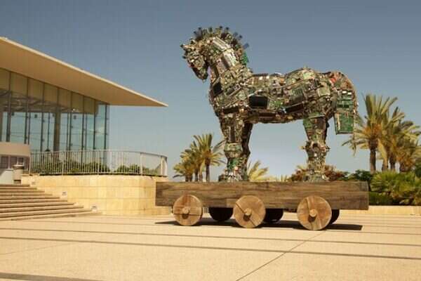 בתל אביב הוצב השבוע סוס טרויאני ענק שמשך את תשומת ליבם של העוברים והשבים באוניברסיטת תל אביב. הסוס, מיצג אומנותי ייחודי מסוגו, המתנשא לגובה של למעלה מ- 6 מטרים ובמשקל של כשני טון, הוצג לראשונה בעולם במסגרת שבוע הסייבר הלאומי באוניברסיטה.