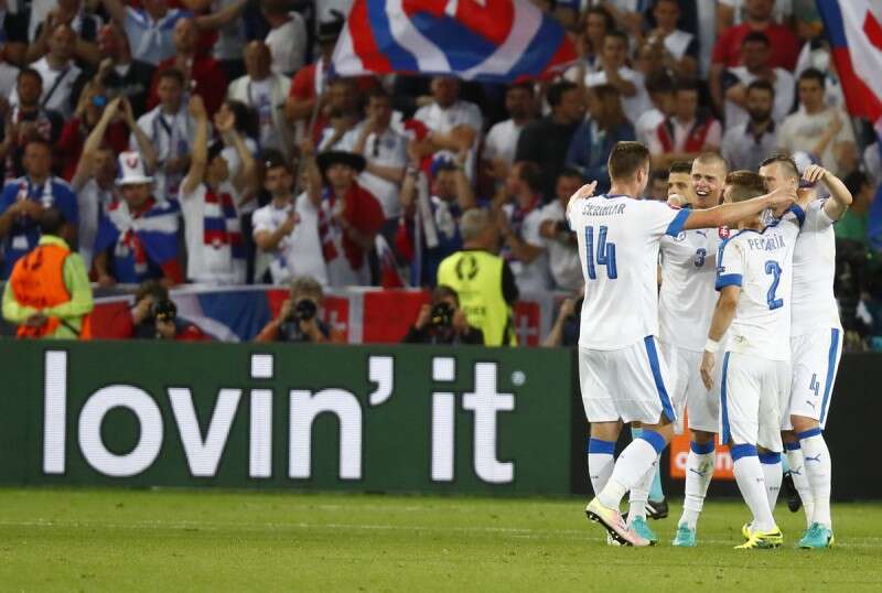 הסלובקים חוגגים את הנקודה שהשיגו // צילום: איי.אף.פי