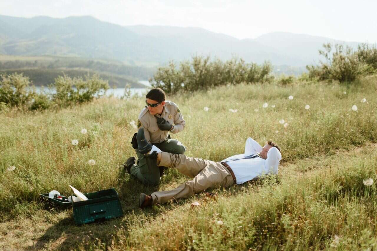 לבסוף שומר הפארק הבין את המצוקה והגיע לסייע. הוא קיבע את הרגל של החתן והרים אותה עד שהגיעו הפרמדיקים לשטח. הרופאים בבית החולים קבעו שהנחש הכיש את החתן, אך לא הזריקו ארס. עובדי בית החולים, לאור הנסיבות, עבדו במרץ כדי לטפל בחתן, ולשחרר אותו לקבלת הפנים, לפני שהכלה תתחיל להתעצבן.