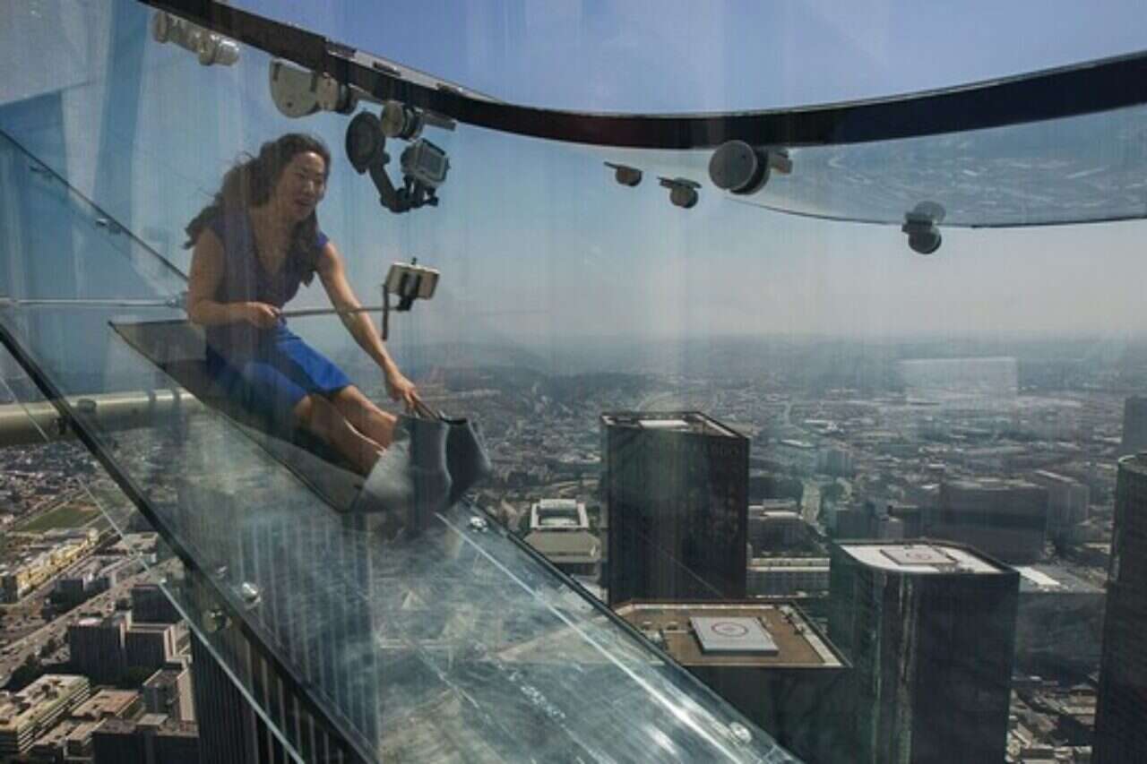 מגדל ה-US BANK בלוס אנג'לס התחדש, בתום שיפוץ מקיף שעלותו נאמדת בכ-50 מיליון דולר, באטרקציה שתשנה את כל מה שחשבתם על מגלשות. הנוף מרהיב, וניתן להשקיף עליו מפסגת המגדל בן 300 המטרים על עיר המלאכים שבקליפורניה. אך עם כל הכבוד לנופים, האטרקציה האמתית היא ללא ספק המגלשה השקופה, שמובילה מהקומה ה-70 לקומה ה-69 – כשהיא תלויה מחוץ לבניין.