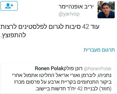 "אני אומרת לכל המנחמים פה, יריב אופנהיימר עכשיו על הקו והוא טוען ש-42 הדירות פה שאושרו יביאו לעוד 42 פיגועים", אמרה אריאל. "אז אני אומרת פה וכל המנחמים שומעים כאן. יריב אופנהיימר, לא ה-42 דירות יביאו לפיגועים, גישות כמוכם תבוסתניות שרוצות לעקור אותנו יגרמו למוות ורצח של עוד ילדה".