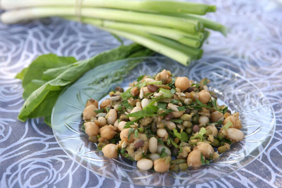 סלט קטניות, עשבים וגרעינים